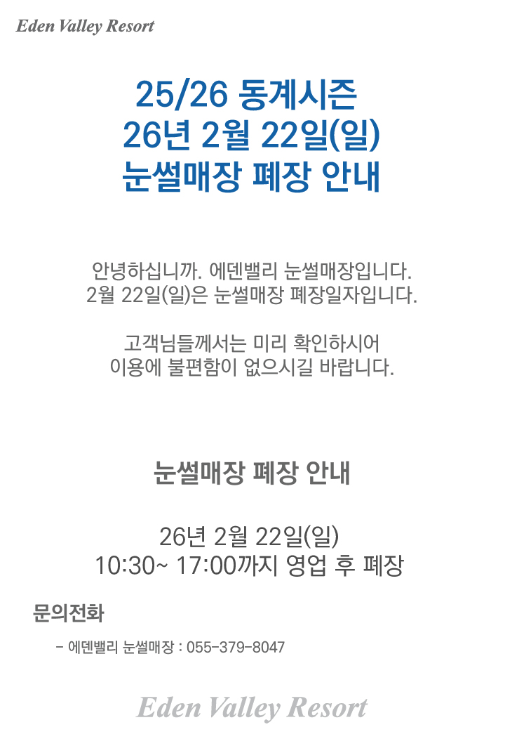 25/26 ¿¡µ§¹ë¸® ½ºÅ°Àå ÆóÀå ¾È³»(26.03.01 Á¾·á)